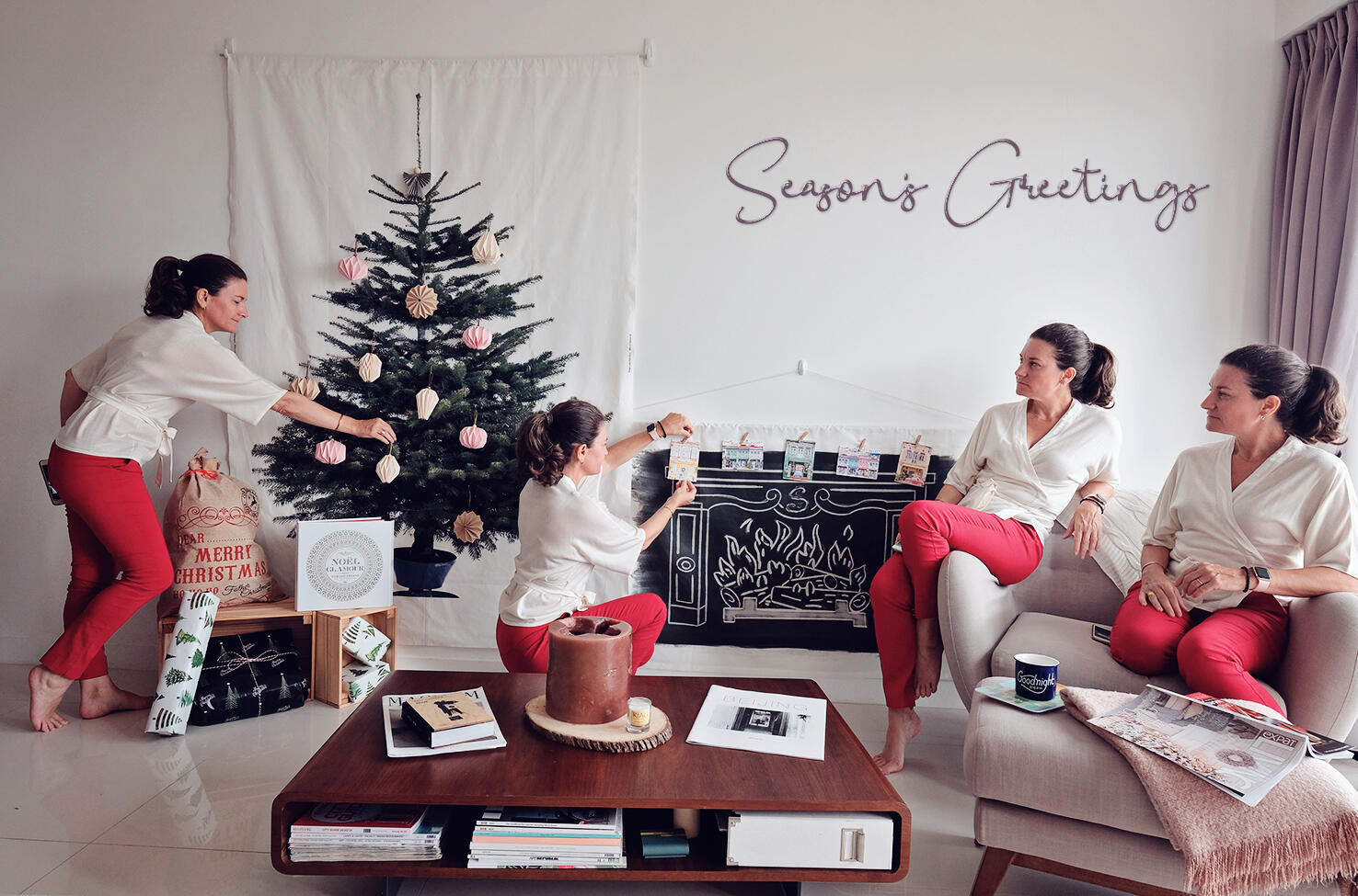 When you don't have a Chimney and Christmas tree where you live... you recreate them and invite your friends to decorate.